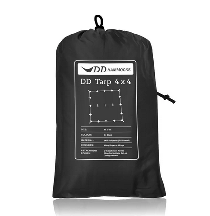 The DD Tarp 4x4 is one of the largest models in the DD Hammocks range, ideal for providing spacious shelter for several people, protecting a workspace, or covering multiple hammocks. Designed to withstand the most demanding conditions, it has 19 reinforced attachment points allowing for a variety of configurations: enclosed shelter, canopy, ground, or suspended.