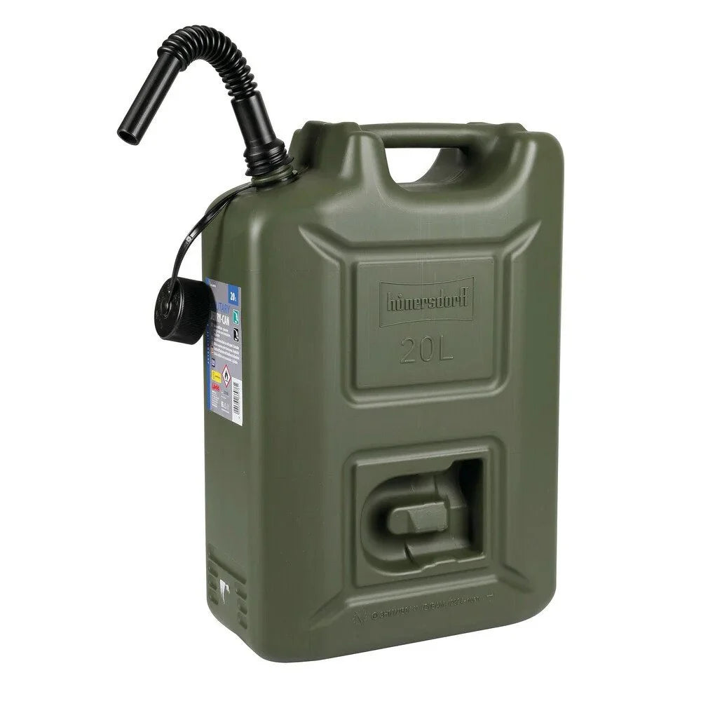 De Hünersdorff jerrycan van 20 liter is ontworpen voor het veilig opslaan en vervoeren van de meest gangbare brandstoffen (benzine, diesel, ethanol, enz.). Het robuuste ontwerp van hogedichtheidspolyethyleen (HDPE) en de UN-goedkeuring maken hem een betrouwbare keuze voor veeleisende gebruikers. Hij is voorzien van een kindveilige dop en een geïntegreerde flexibele afvoer voor eenvoudig vullen zonder spatten. De ergonomische handgreep en compacte vorm maken hem gemakkelijk te hanteren en op te bergen.