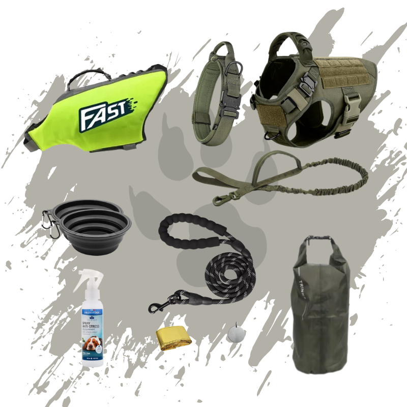 Deze kit is ontworpen en ontwikkeld voor overstromings- en crisissituaties met uw hond. Hij biedt, in één pakket, alles wat u nodig hebt om uw trouwe viervoeter veilig, gehydrateerd, zichtbaar en herkenbaar te houden, zelfs in kritieke omstandigheden.