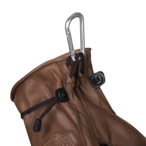 Le système de cordon ajustable couplé à un élément élastique sur la partie intérieure du poignet garantit un maintien sûr et empêche toute infiltration de neige, vent ou débris. Une boucle de suspension et un petit mousqueton permettent de fixer facilement les gants à une ceinture ou un sac à dos.